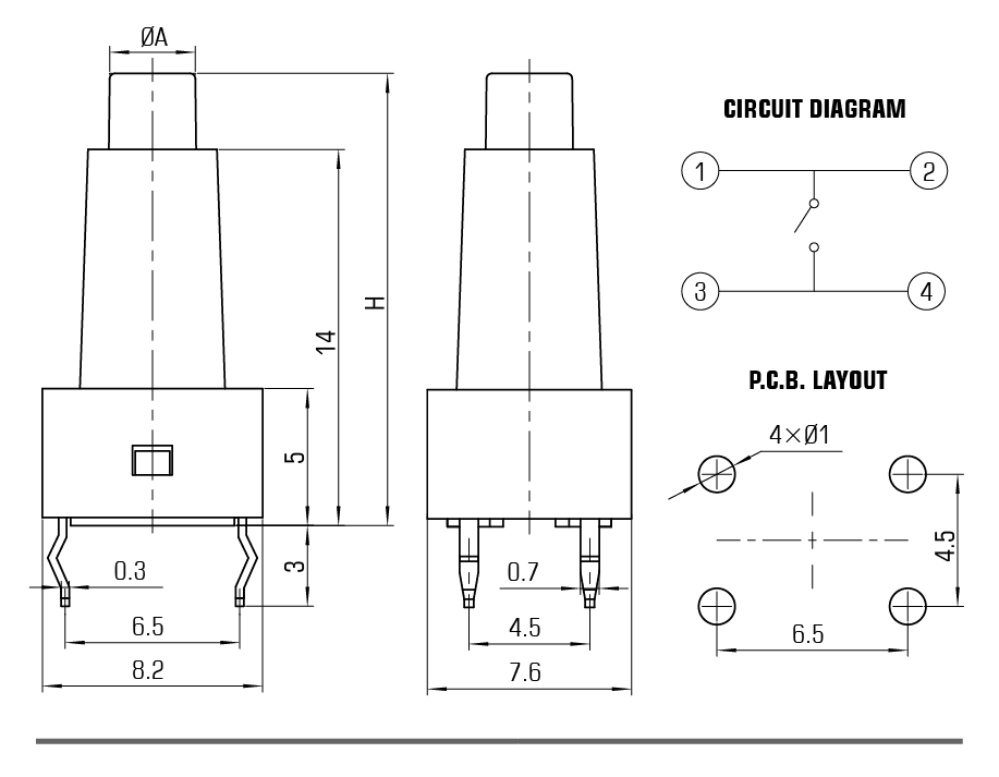 | DIELECTRIC STRENGTH | AC250V for 1 Minute | |