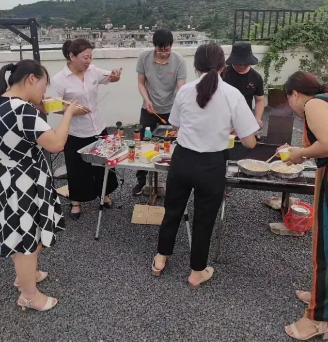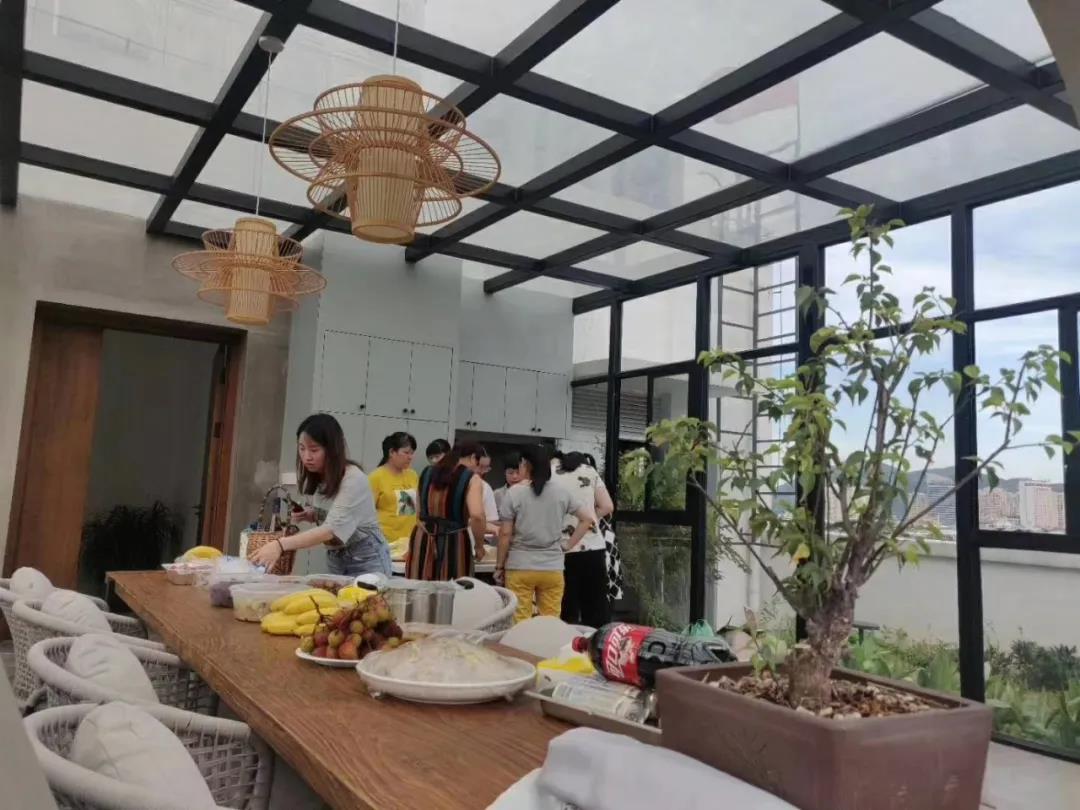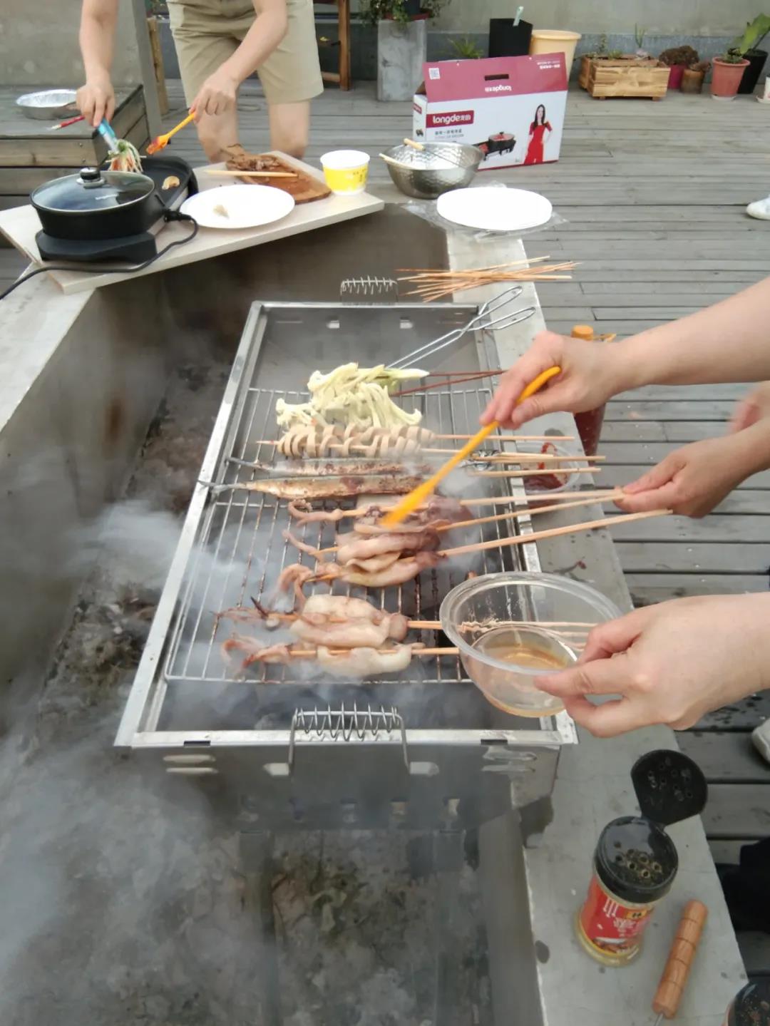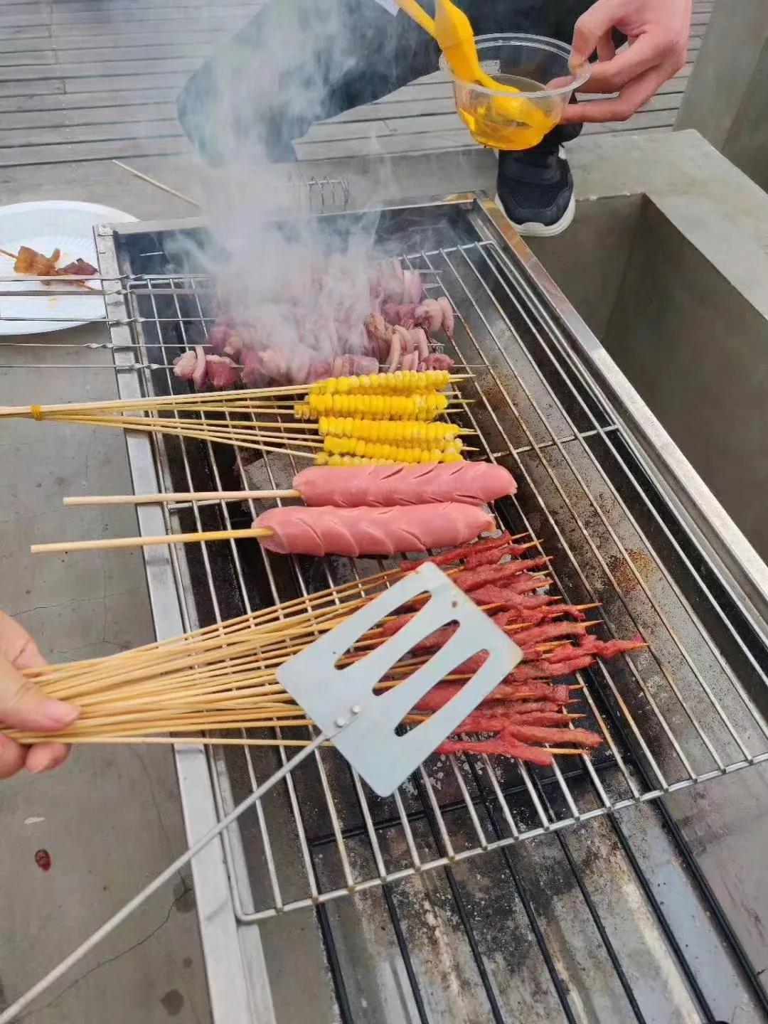 2020年6月13日下午下班后,燒烤活動(dòng)在公司B棟陽(yáng)臺如火如荼地進(jìn)行,那里有陽(yáng)光房、走廊、砂礫、秋千、音樂(lè )、向日葵、玫瑰、草莓、茄子、黃瓜等,應有盡有。